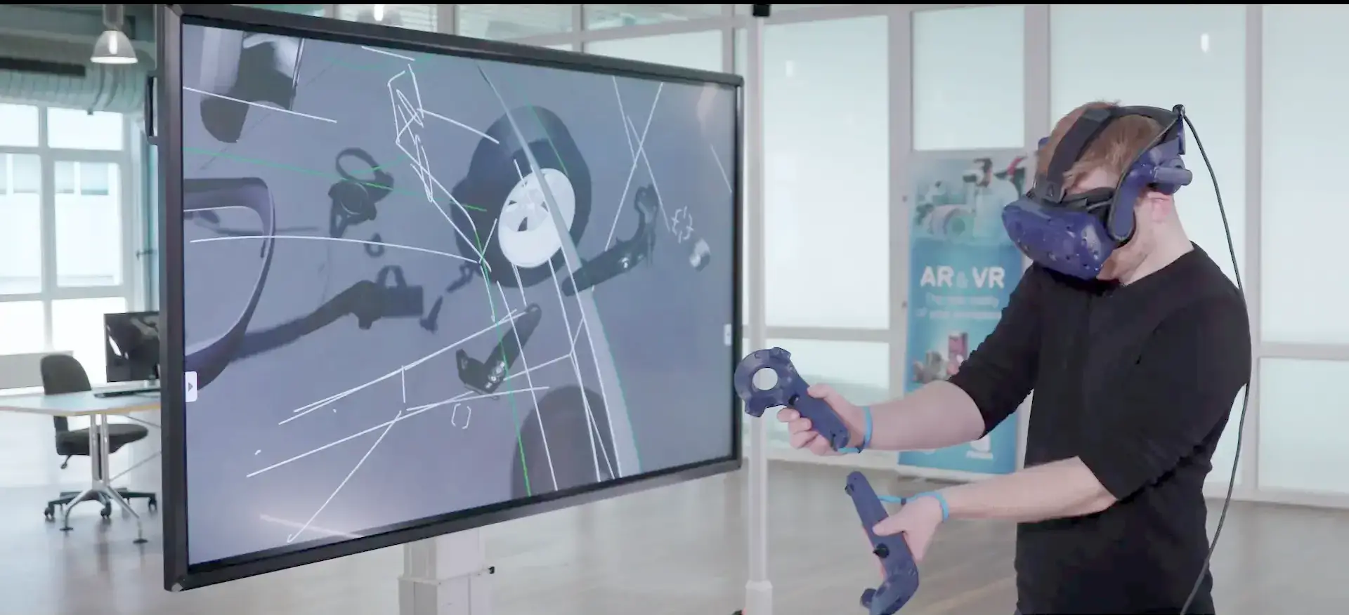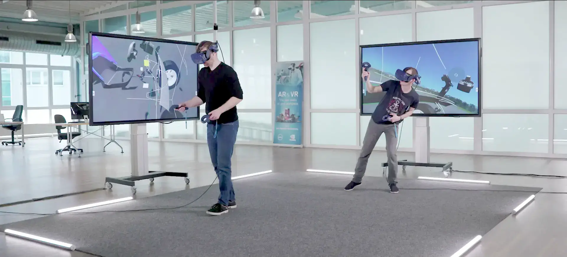 Digitale Transformation, Montagesimulation, Formfindung und Design, Simulationsvisualisierung wie VR-Windkanal und Crashtest, Kinematik, Schulung und das alles mit bis zu zehn Personen.