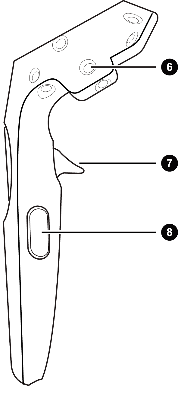 Im VR-Modus können Sie die „Squeeze“-Taste eines Ihrer Controller drücken (Nummer 8 im Bild). Dadurch wird ein Befehl zum Zeichnen benutzerdefinierter Splines in der Szene gestartet. Sie können nun Taste 7 drücken, um Kontrollpunkte der Splines zu zeichnen. Ein erneutes Drücken von Taste 8 beendet den Befehl. Die Kurve ist fertig.